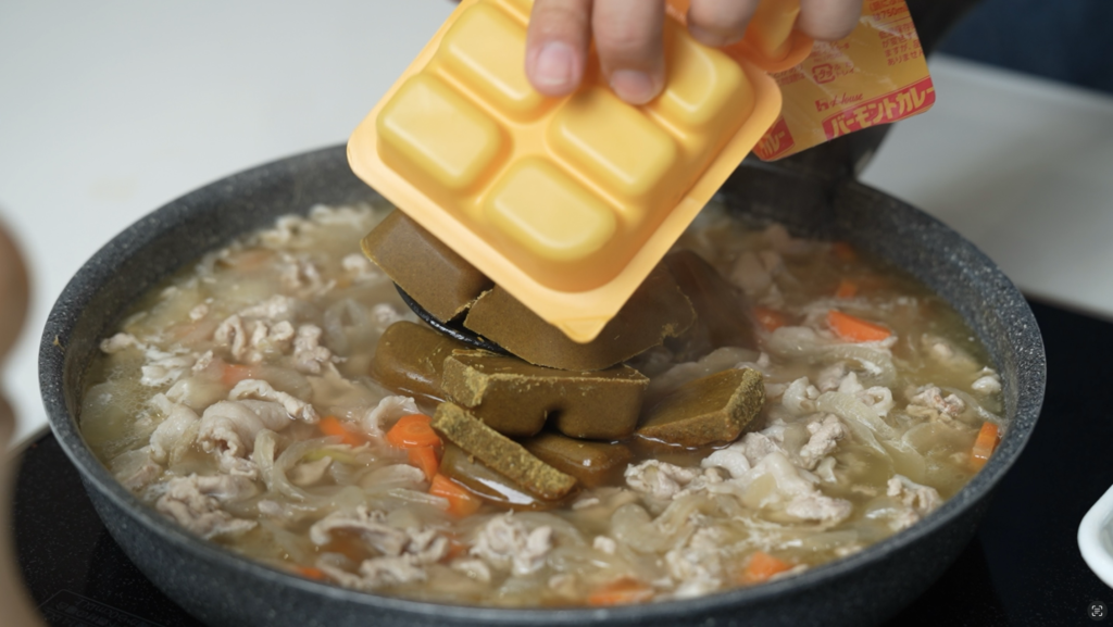 一度火を止め、温度を少し下げてからルーを割り入れます。