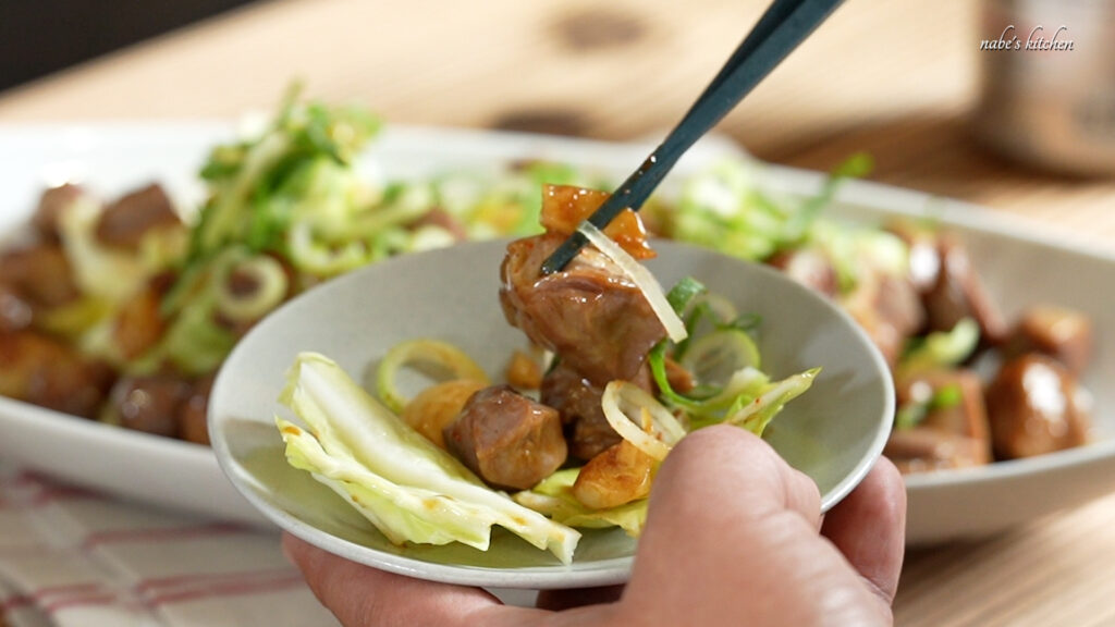 大切なのは、下処理でブニョブニョをしっかり取り除くこと、そして調味料を絡めてから炒めること。